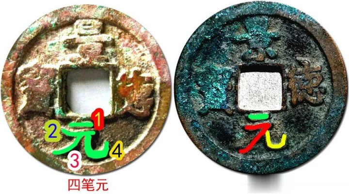 这个版别的“元”字,是由四笔写成。