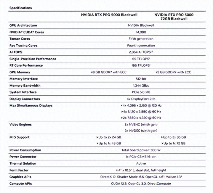 NVIDIA告示,基于Blackwell架构的RTX PRO 5000专科显卡的72GB显存升级版现已全面上市。
