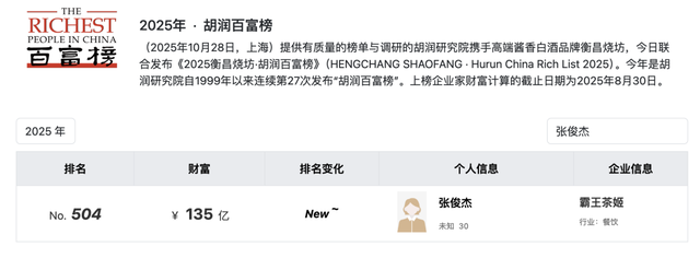 2025年,张俊杰也凭借霸王茶姬上榜《胡润百富榜》,以135亿元的金钱值位列第504名,与高纪凡眷属的差距惟一23名。而从又名孤儿到如今的“富豪”,张俊杰只用了15年。