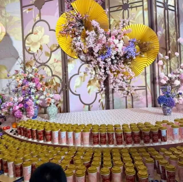 从流出的大婚像片可看出,男女两边身着录取战胜,以传统大红色与金色交相照映。高海纯花团锦簇浅笑示东说念主,张俊杰通常一脸欢畅。尤其引东说念主注策画是,在这场录取婚典现场,摆放了许多杯霸王茶姬奶茶,数目之多,蔚为壮不雅。这场婚典,彰着成了一次霸王茶姬最好的广宣契机。